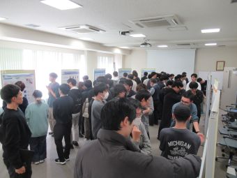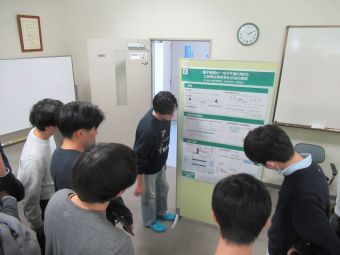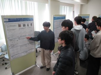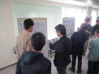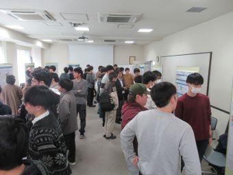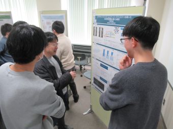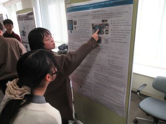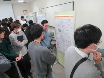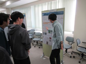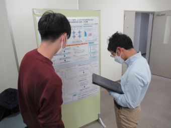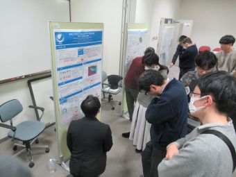 大学院博士課程前期1年生の中間報告会を、12月15日、16日(13:00-17:00)の日程で、総合研究棟W202において、対面のポスター形式で行いました。これまでの研究成果や現状での問題点、今後の展望についてまとめ、発表していただきました。